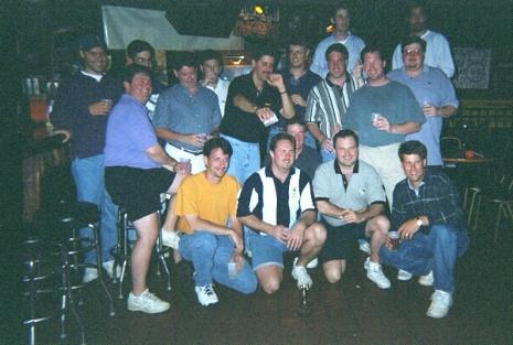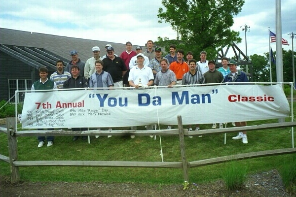 Top Ten Things overheard at the 1998 "You Da Man" ------------------------------------------------- X . "I'm going to kill his ass." X . "I can't kiss him again!" (Michelle H. - kissing Monk for photos) X . "What do you mean sorry?...You did me a favor!" (Chris responds to Pood's appologie for winning the tournement) 10. "That is not your color." (Carolyn to Monk after painting his toenails) 9. "Worm buddies for life!!! " ( Monk & Michelle toast as they split and eat the tequila worm) 8. "Do you want the skin or do you want the put?" (Monk to Noz) 7. "Two ball's shot to hell ... Fuck the team! It's every man for himself." (Dave on first tee) 6. "Lookin a little empty Busto?" Busto Responds: " Cause I drank it" 5. "OH! Did that go into the hole?" (Mark Dille on his eagle shot out of the sand) 4. "Ten Bucks ?!?... This beer should never be empty." (Monk to Leslie) 3. "I did'nt know bears had tails." (someone commented looking at a man dressed in a bear suit.) "Maybe his suit is on backwards." ( Michelle H. Replied) 2. "Honk on BoBo" (Pood) 1. "I guess bears don't shit in the woods." (Mark Dille noticed the bear enter the restroom)